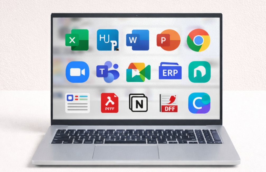 - 웹 업무: 크롬 탭 다수, ERP, 그룹웨어, 노션
